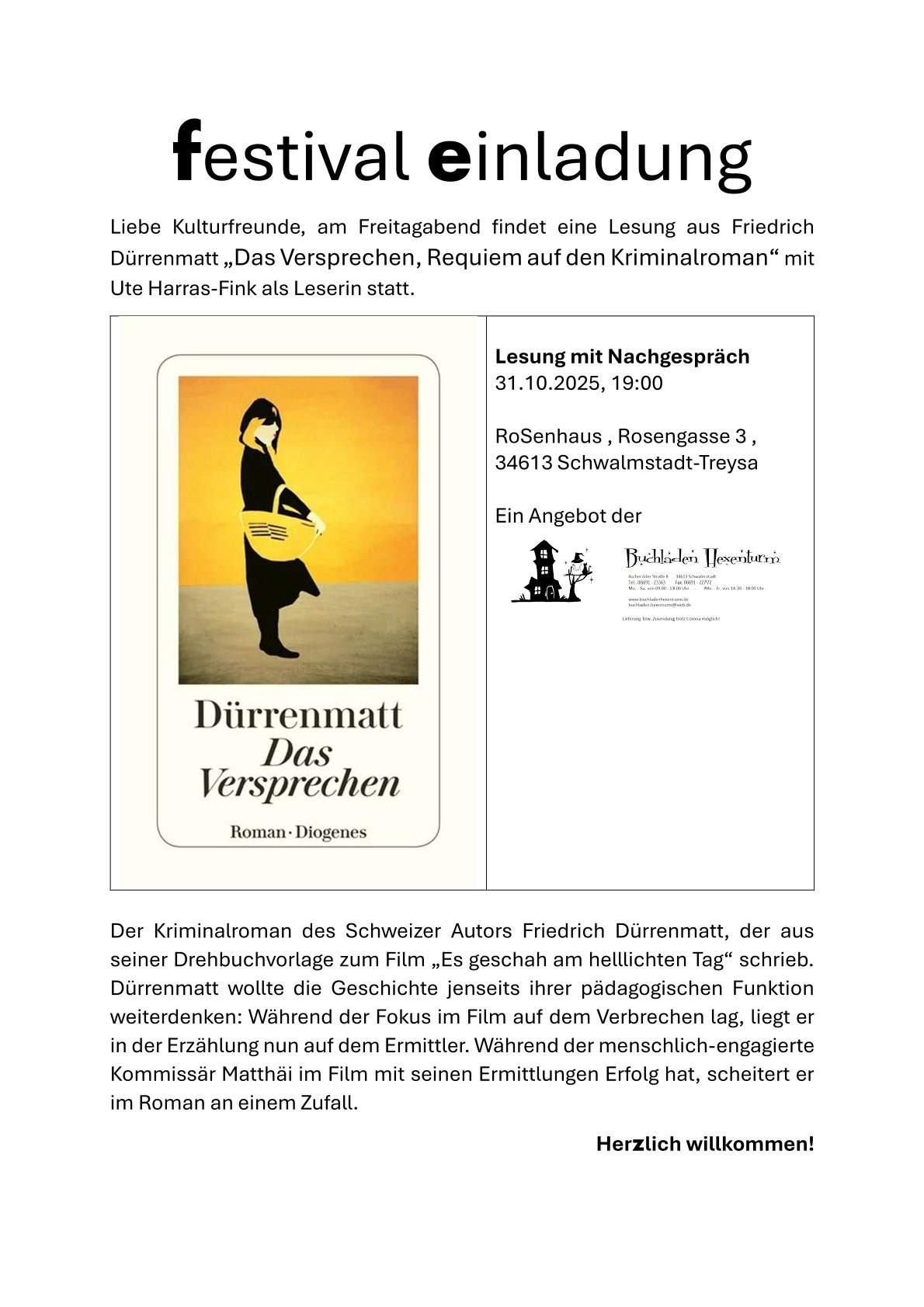 Lesung: Das Versprechen, 31.10.2025